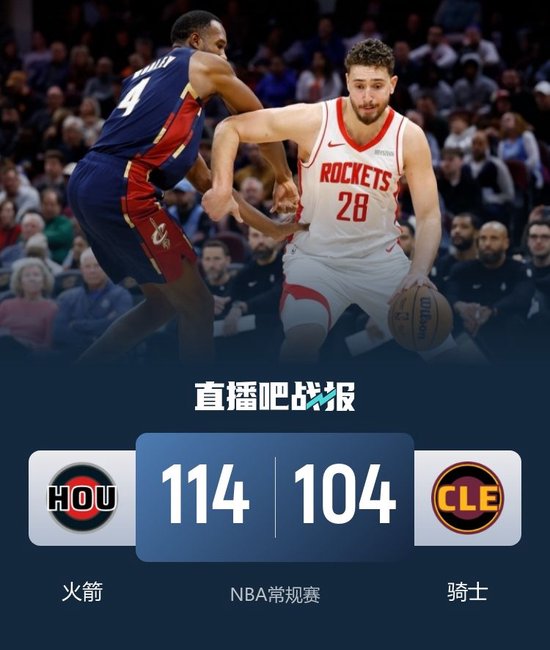 火箭力克骑士迎5连胜!申京28+11+7 KD20分 霍勒迪末节14分