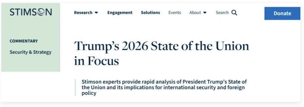 美国史汀生中心智库在一篇回顾特朗普国情咨文的文章中指出,虽然特朗普将今年1月强行控制马杜罗的行动视为大胜,但政府对于后续如何与委内瑞拉打交道缺乏明确目标。