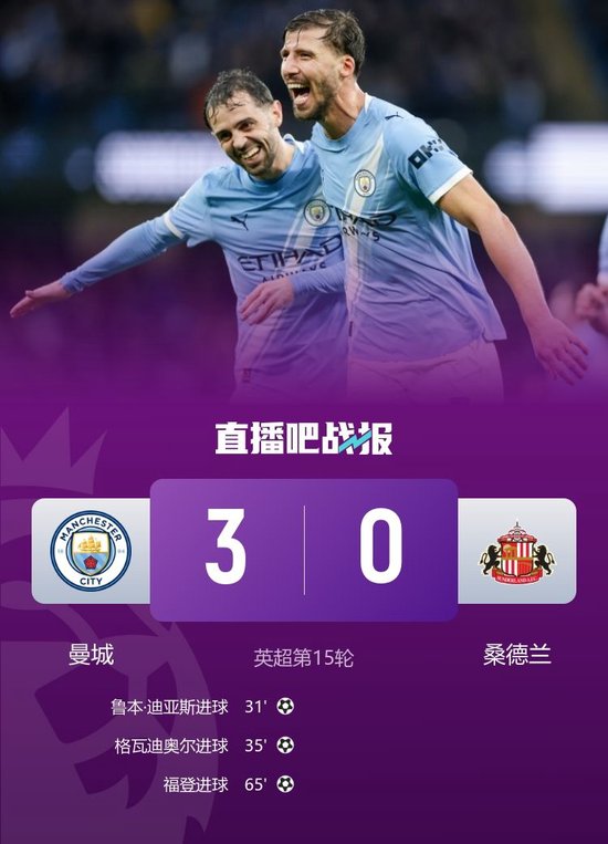 直播吧12月7日讯 北京时间12月6日晚上23:00,英超第15轮,曼城坐镇伊蒂哈德球场迎战桑德兰。上半场,鲁本·迪亚斯外围重炮破门,福登助攻格瓦迪奥尔头槌建功。下半场,多库击中立柱,多纳鲁马扑出单刀球,扎卡射中门框,谢尔基插花脚助攻福登头球得分,奥尼恩染红。全场结束,曼城3-0桑德兰。本场过后,曼城积31分升至第二,距离榜首的阿森纳仅差2分;桑德兰积23分暂列第七。