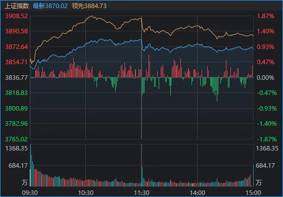 全市场4300只个股上涨,95只个股涨停。沪深两市成交额1.81万亿元,较上一个交易日放量844亿元。
