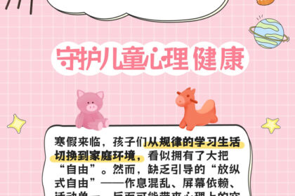 寒假是孩子放松和养成健康习惯的关键时期。人民网与人民好医生联合推出守护青少年假期健康成长系列,从心理、护眼和饮食三方面提供科学实用的方案,帮助孩子在假期养成良好习惯,享受宅家生活的同时促进身心健康发展。...