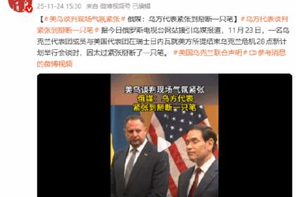 国际美乌谈判现场气氛紧张 俄媒:乌方代表紧张到掰断一只笔[美乌谈判现场气氛紧张 俄媒:乌方代表紧张到掰断一只笔] 据今日俄罗斯电视台网站援引乌媒报道,11月...admin2025年11月24日 Read More