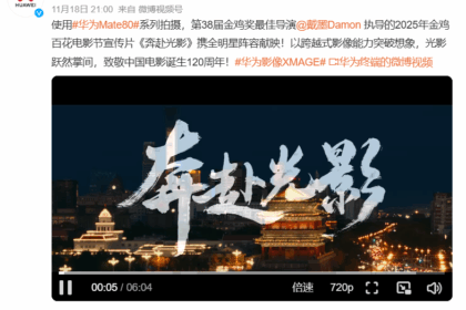近日,由华为Mate 80系列全程拍摄的2025年金鸡百花电影节开幕短片《奔赴光影》在华为终端官方微博正式发布...